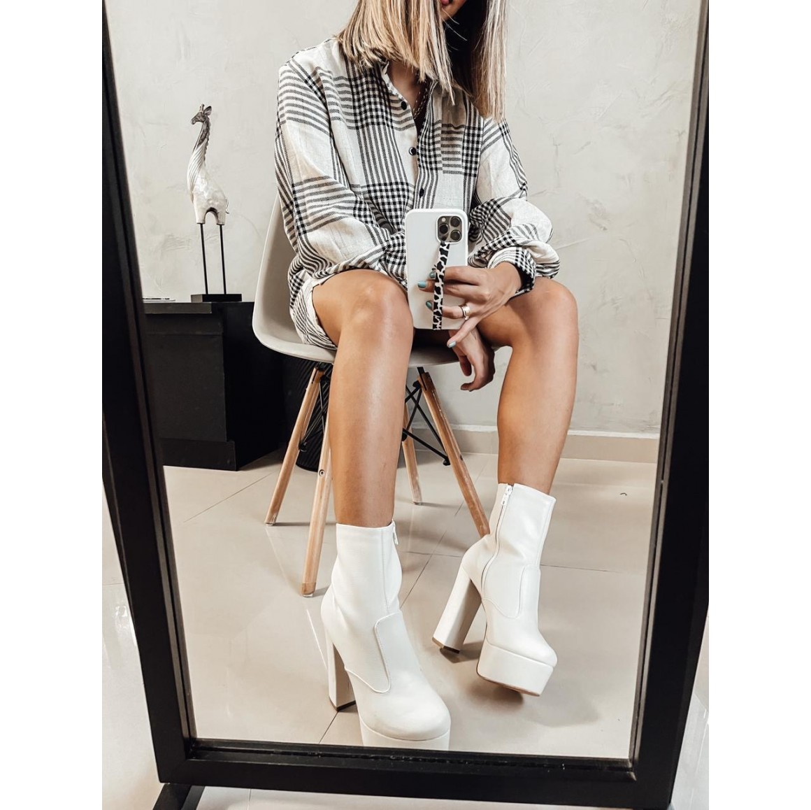 BOTA GELO EM COURO, MEIA PATA, SALTO DE 15CM, ZIPER NA LATERAL.